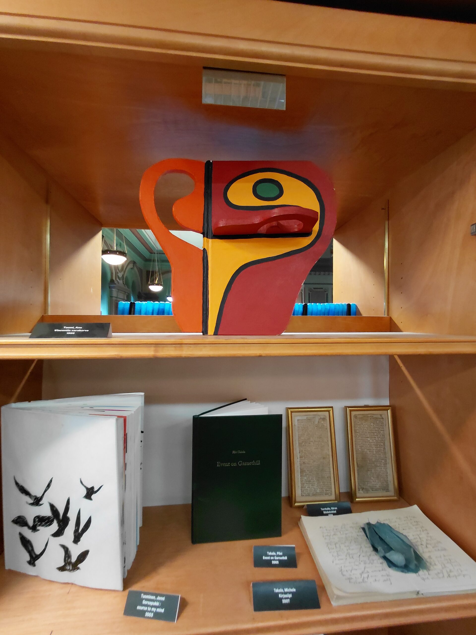 Alla on kuvia kokoelmasta. Jokainen voi käydä katsomassa kokoelmaa omalla ajallaan Kirjaston aukioloaikoina. Tutustuminen kannattaa. Moni kirjailija tai kuvataiteilija on luonut jotain ainutkertaista, jota ei muutoin voisi yhdistää asianomaiseen henkilöön.